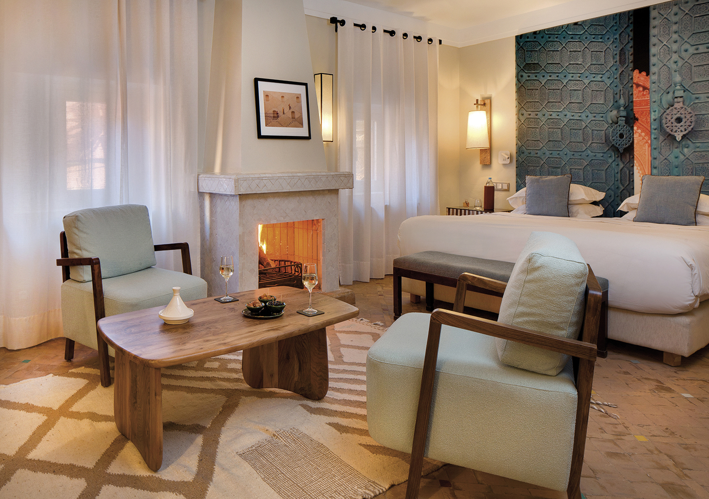 Cette transformation met à l’honneur le savoir-faire des artisans marrakchis, gar- diens d’un patrimoine vivant : bois sculpté, zelliges, tadelakt, ferronnerie et textiles dialoguent avec harmonie. Parmi ces collaborations, Sissi Morocco signe une contribution remarquée, renforçant l’élégance et l’âme des nouveaux espaces.