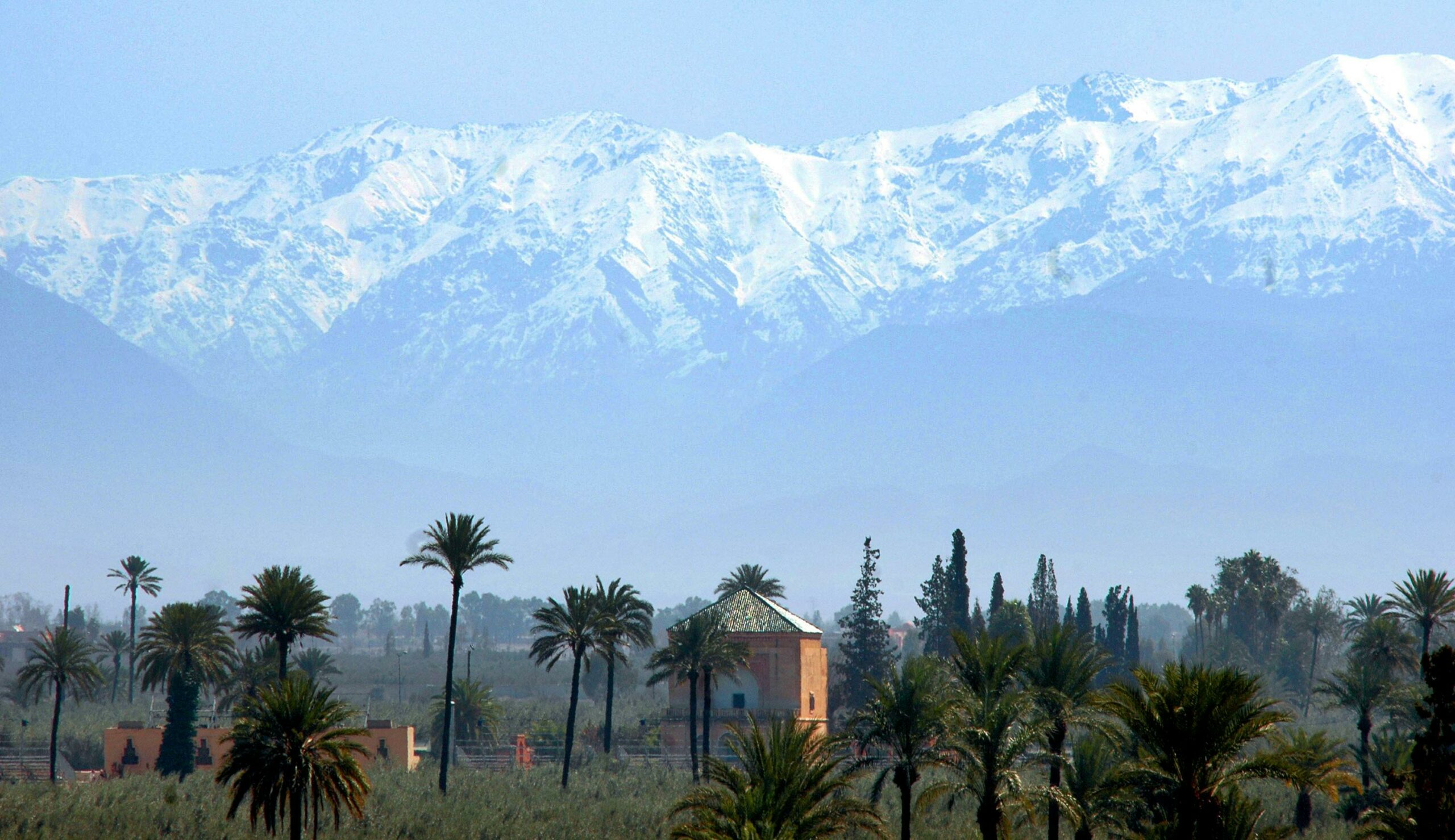Le spectacle des cimes depuis la Médina : Il faut prendre de la hauteur. Peu importe le toit, pourvu qu’on ait la vue. En grimpant sur les terrasses de la vieille ville, le panorama coupe le souffle : le minaret de la Koutoubia se détache net sur le fond blanc de l’Atlas. C’est le spot idéal pour le thé de 16h, quand la pierre ocre commence à rougeoyer et que la montagne change de couleur à chaque minute.